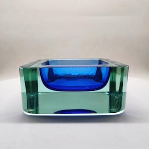 Stunning Ashtray or Catch-all in Murano Glass. Submerged Green color.