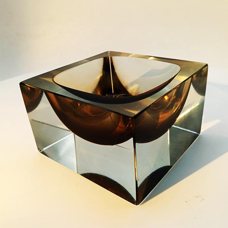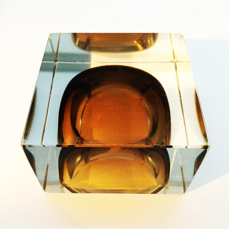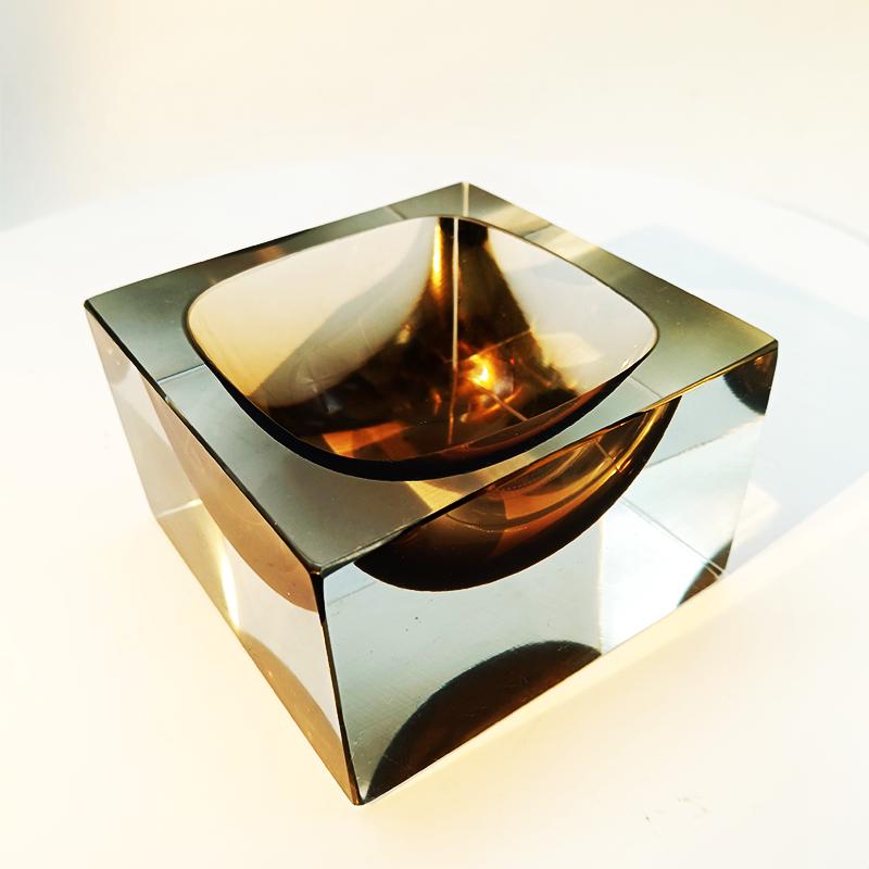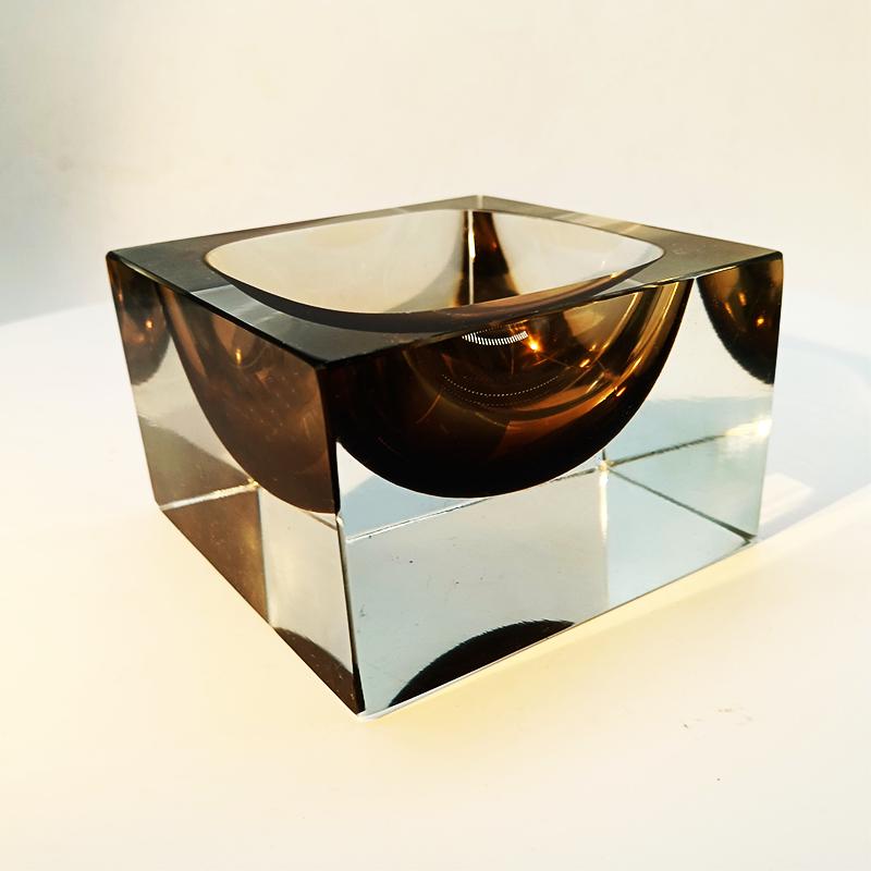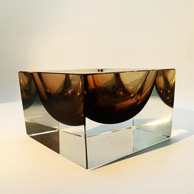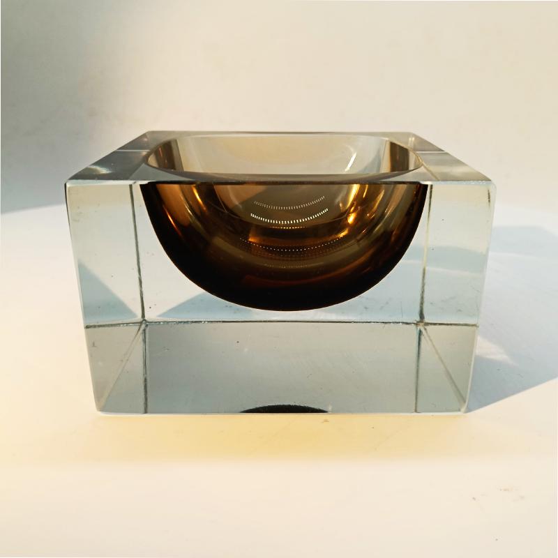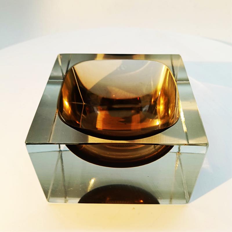 Big Square Ashtray or Catch-all in Murano Glass by Flavio Poli for Seguso. Larger than Flavio Poli's normal squares which are usually 7.5 cm wide.