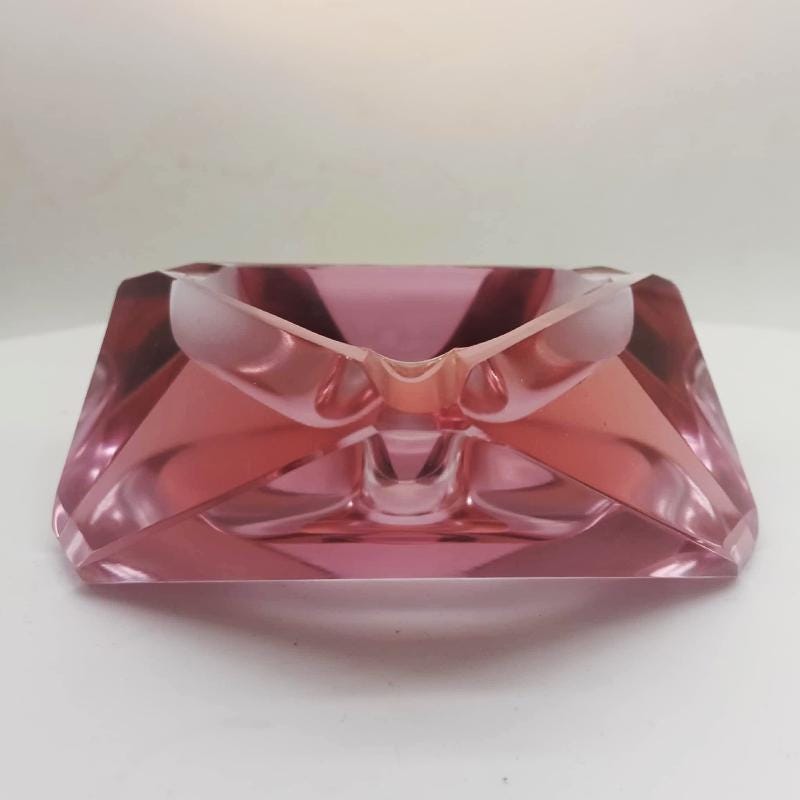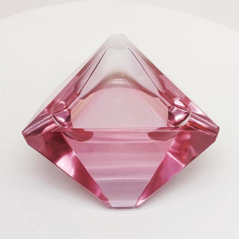 Multifaceted Ashtray or Catch-all in Murano Glass Stunning Pink colors.