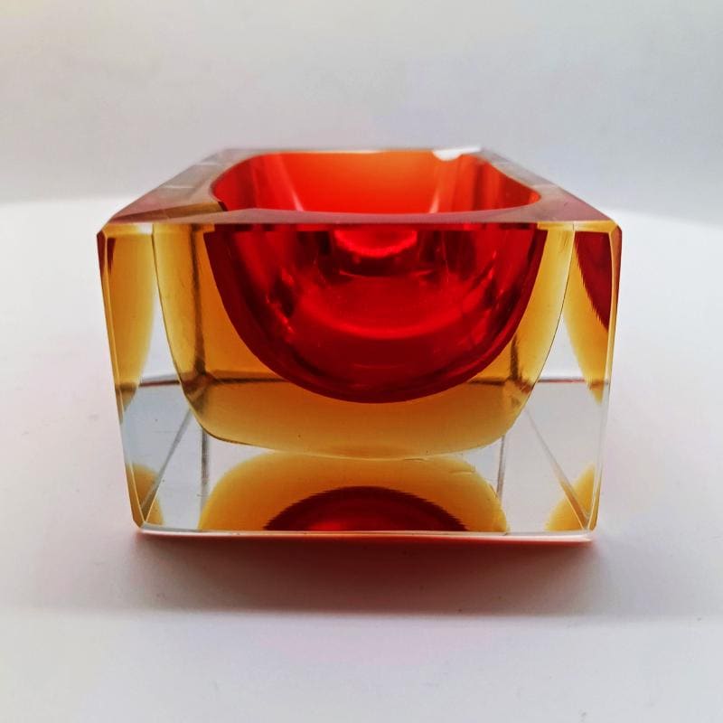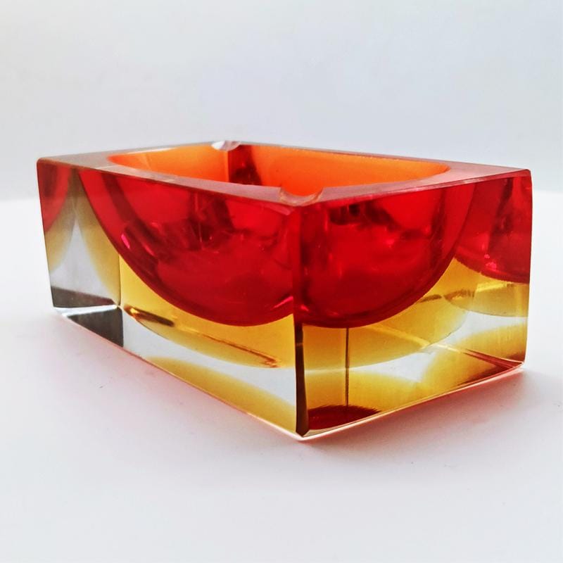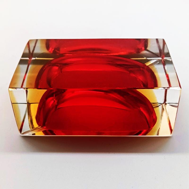 Stunning Rectangular Ashtray or Catch-all in Murano Glass by Flavio Poli for Seguso. Two Submerged colors: Red and Golden Yellow.