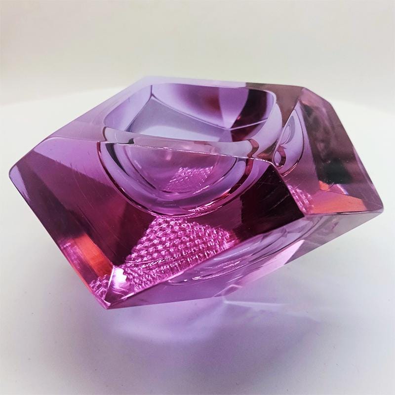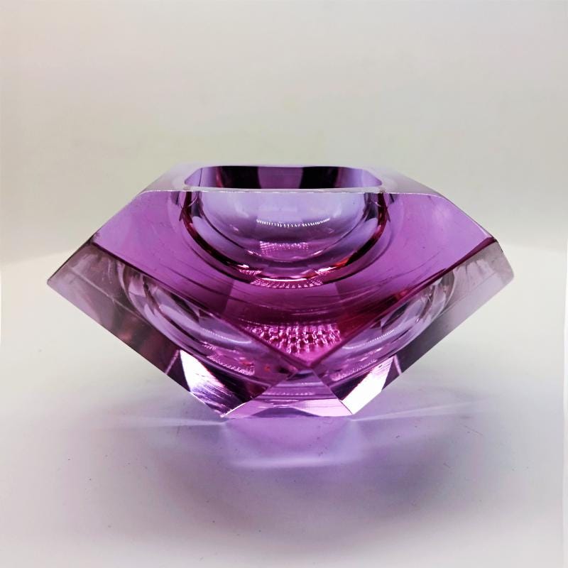 Ashtray or Catch-all in Murano Glass by Flavio Poli for Seguso. Stunning Total Purple Submerged color.