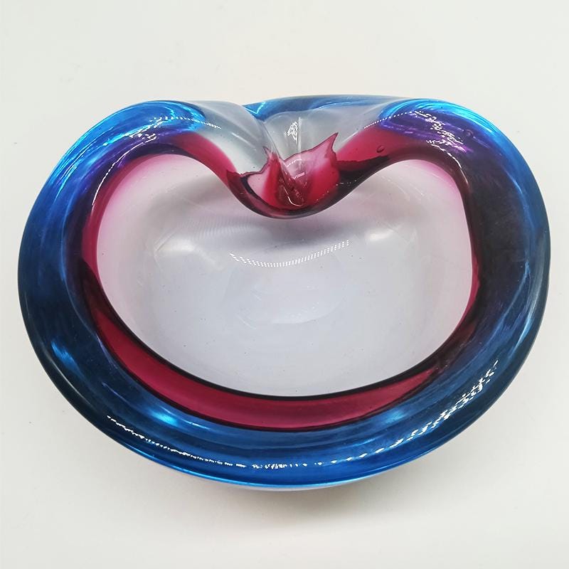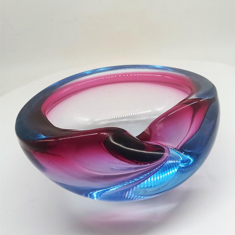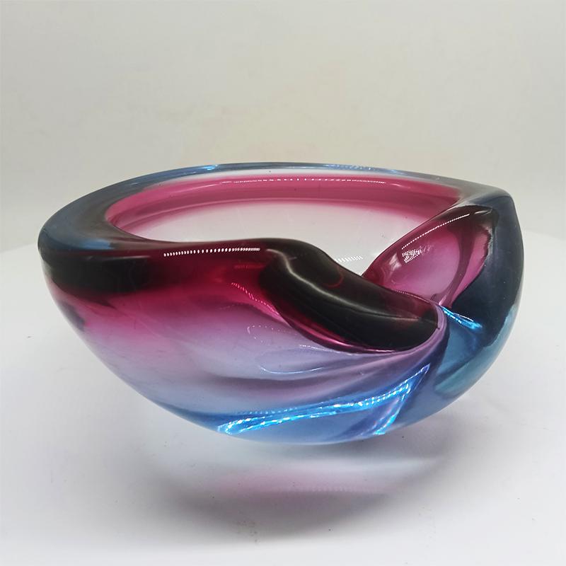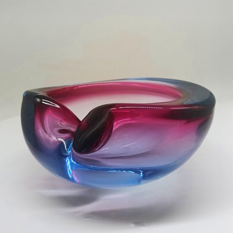 Ashtray or Catch-all in Murano Glass by Flavio Poli for Seguso. Two stunning submerged colors: Purple and Sky Blue.