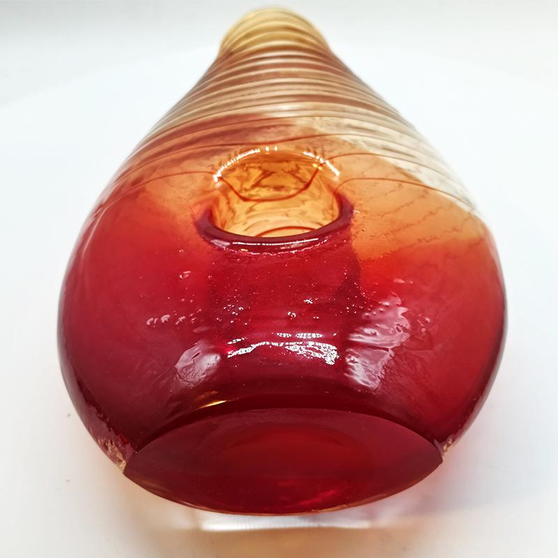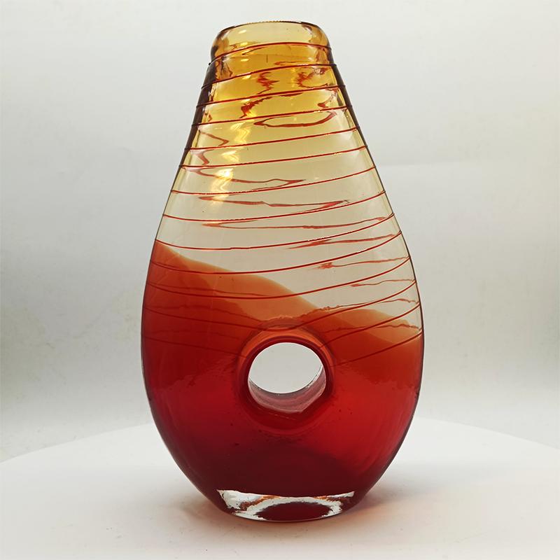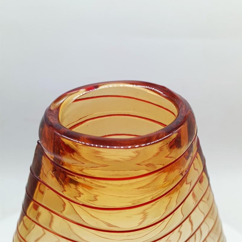 Stunning Vase in Murano Glass. Orange and Amber colorway with spaghetti trim. Hand-Worked.