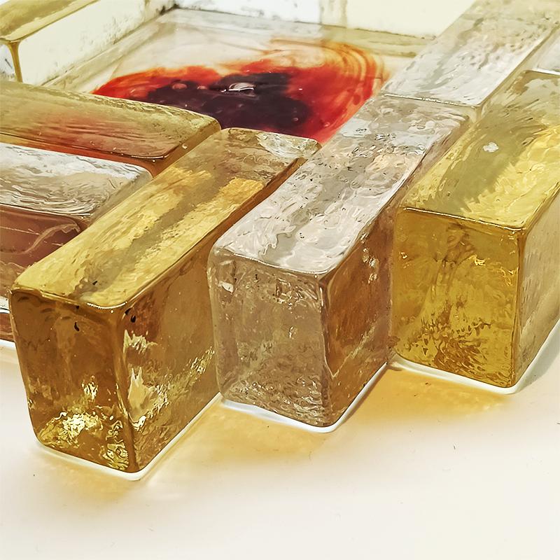 Stunning Gold, Transparent, and Red colors. It is a Luxury mid-century Murano Glass item.