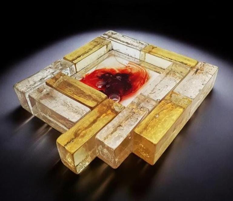 Mid-Century Rare Sculpture or Ashtray in Murano Glass attributed to Toni Zuccheri for Venini. Blown glass.