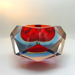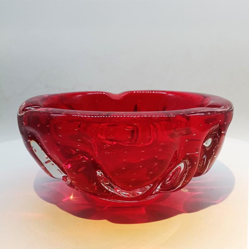 Ashtray or Catch-all in Murano Glass. Ruby red color with Air Bubbles.
