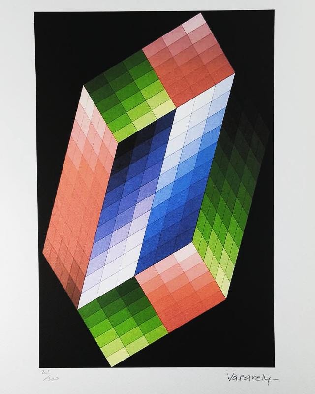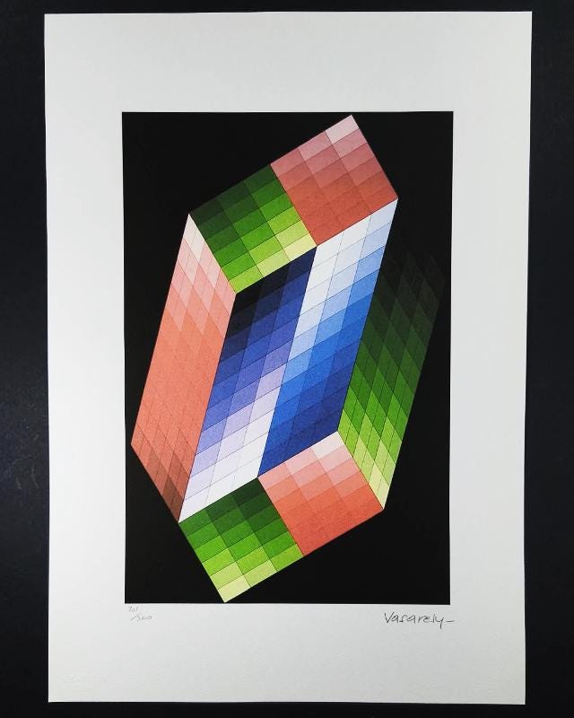 Victor Vasarely Lithograph. Limited Edition Lithograph n 201 / 500- Numbers signed in pencil. Editor: S.P.A.D.E.M. Paris. Original Publisher's Stamps (S.P.A.D.E.M. Paris) impressed on the front and back. Signature of the Author: Plate-Signed. After