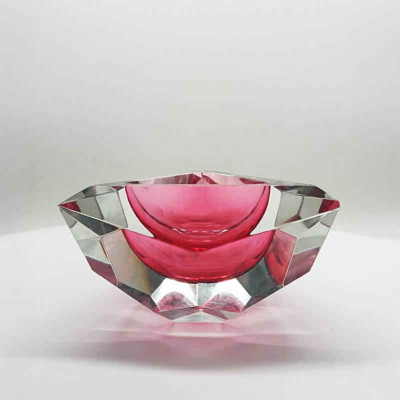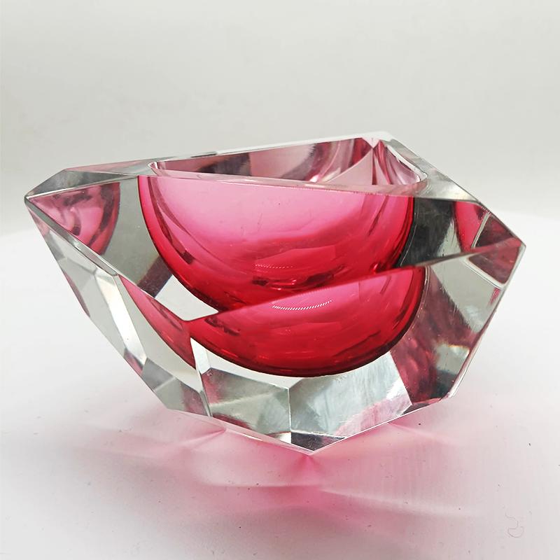 Multifaceted Triangular Ashtray or Catch-all in Murano Glass by Flavio Poli for Seguso. Stunning Pink Submerged color. Rare Shape.