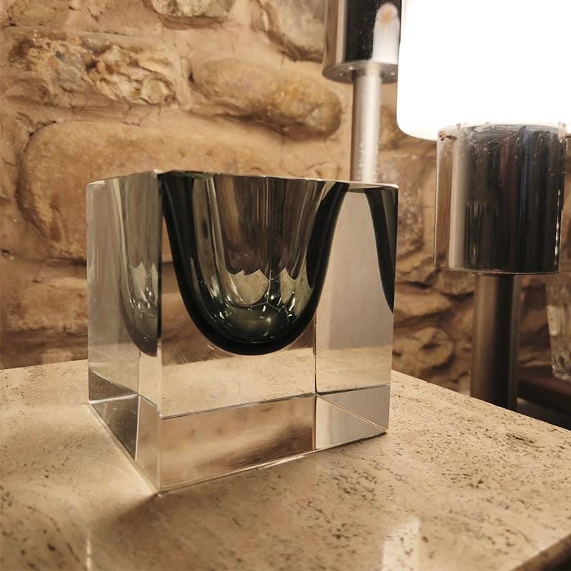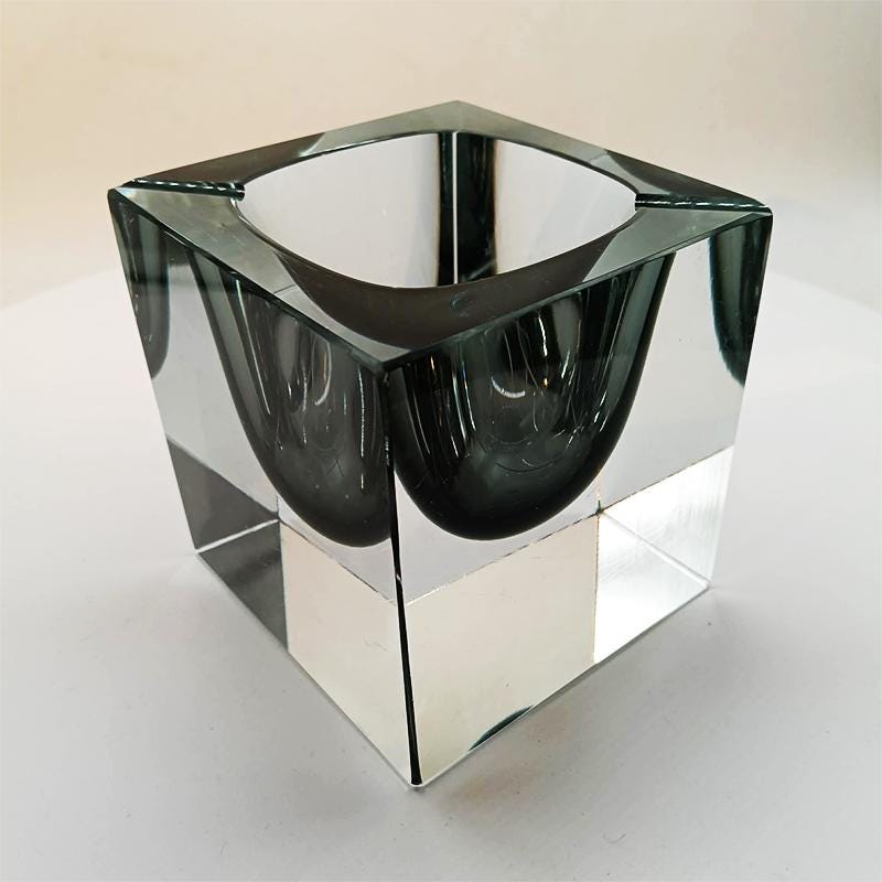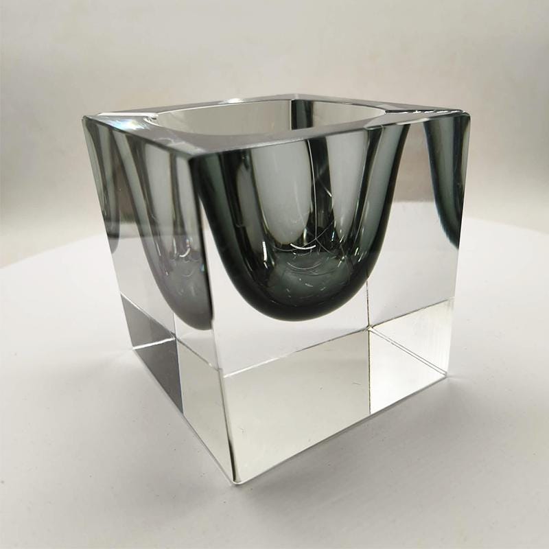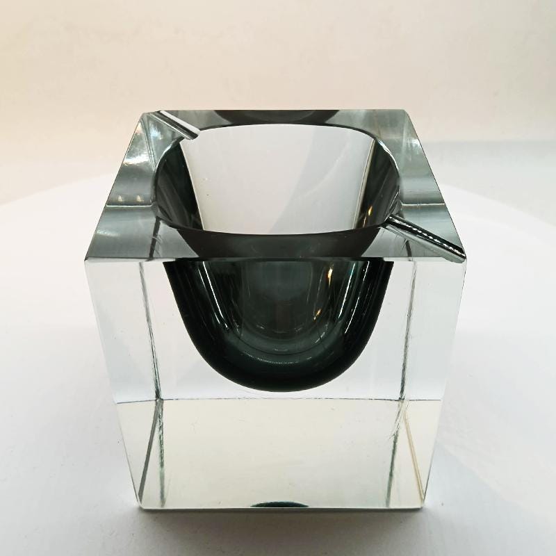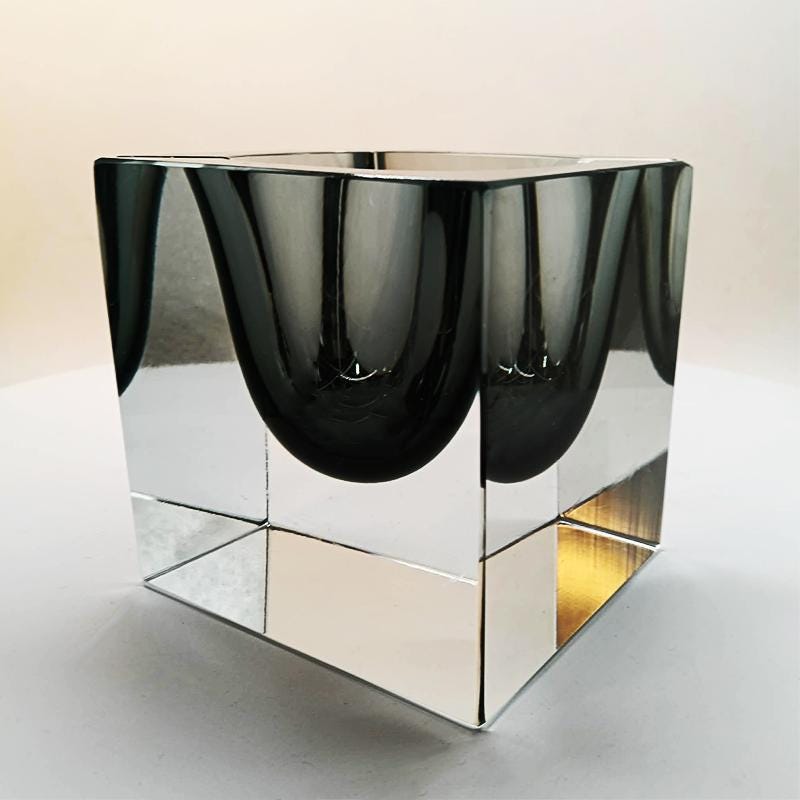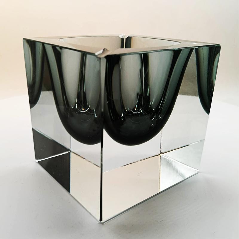 Big Rare Cube - Ashtray or Catch-all in Murano Glass by Flavio Poli for Seguso. Stunning Dark Gray Submerged color.