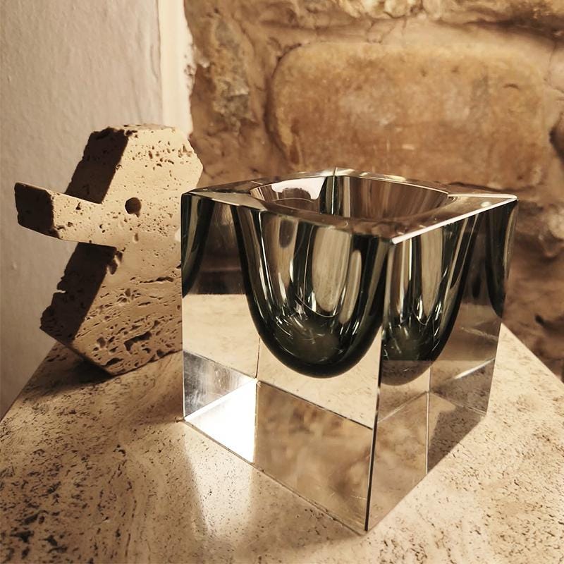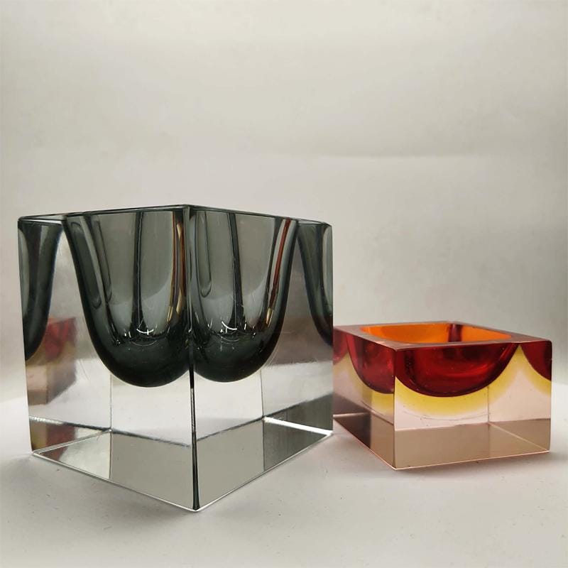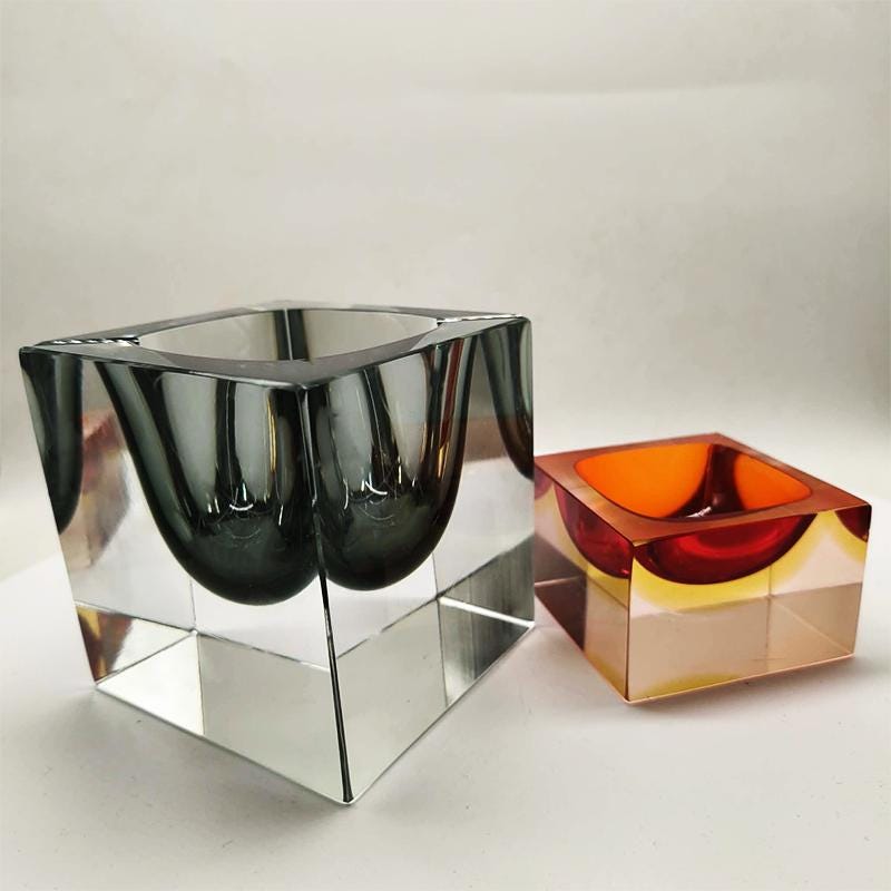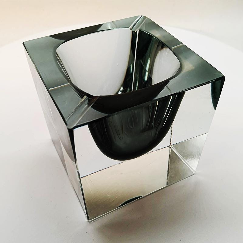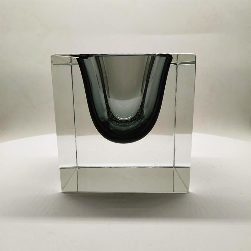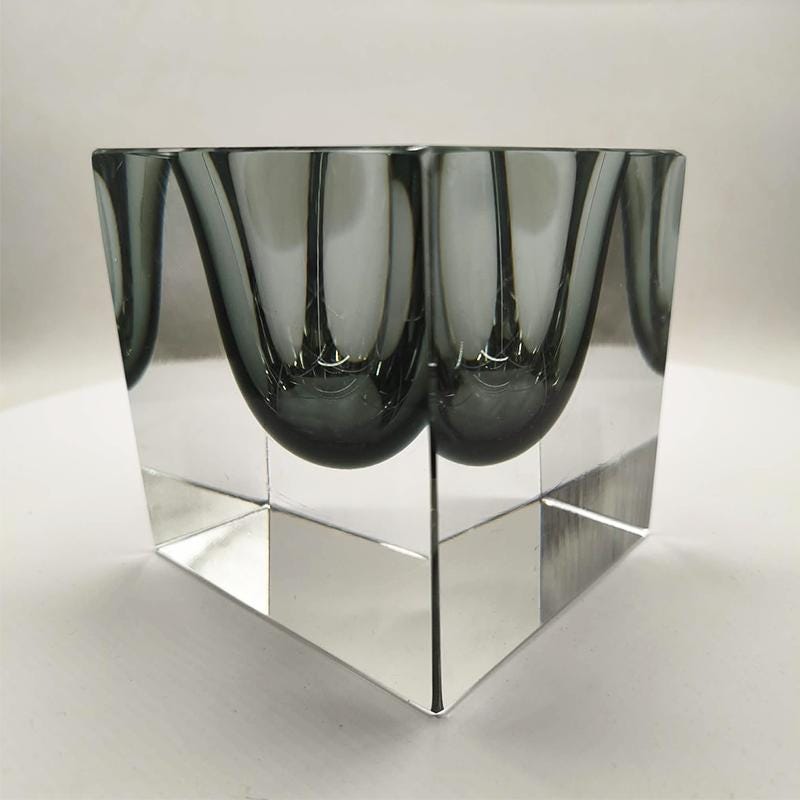 Big Rare Cube - Ashtray or Catch-all in Murano Glass by Flavio Poli for Seguso. Stunning Dark Gray Submerged color.