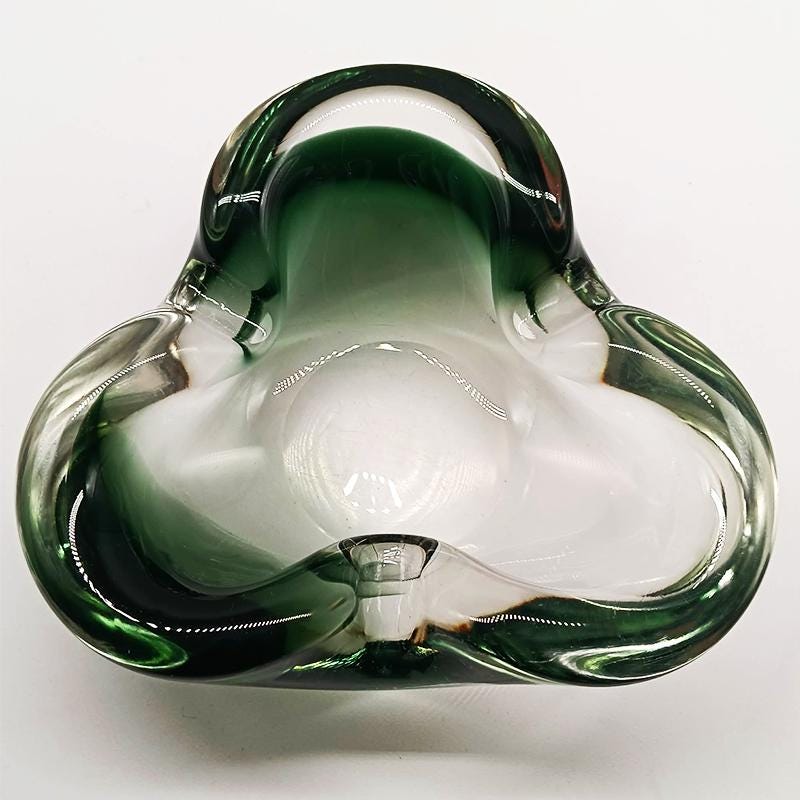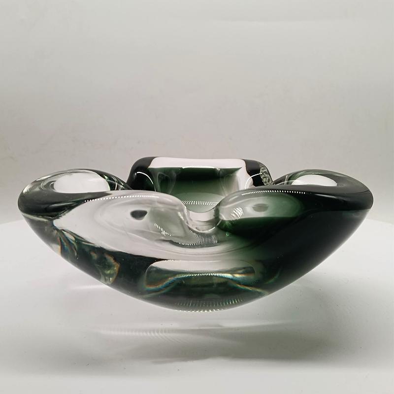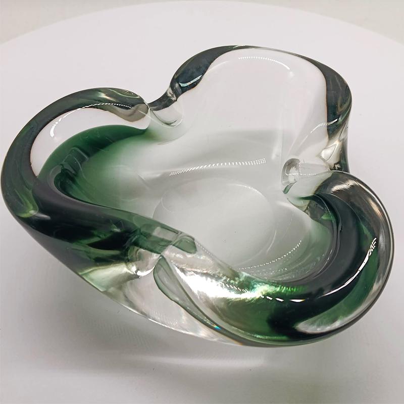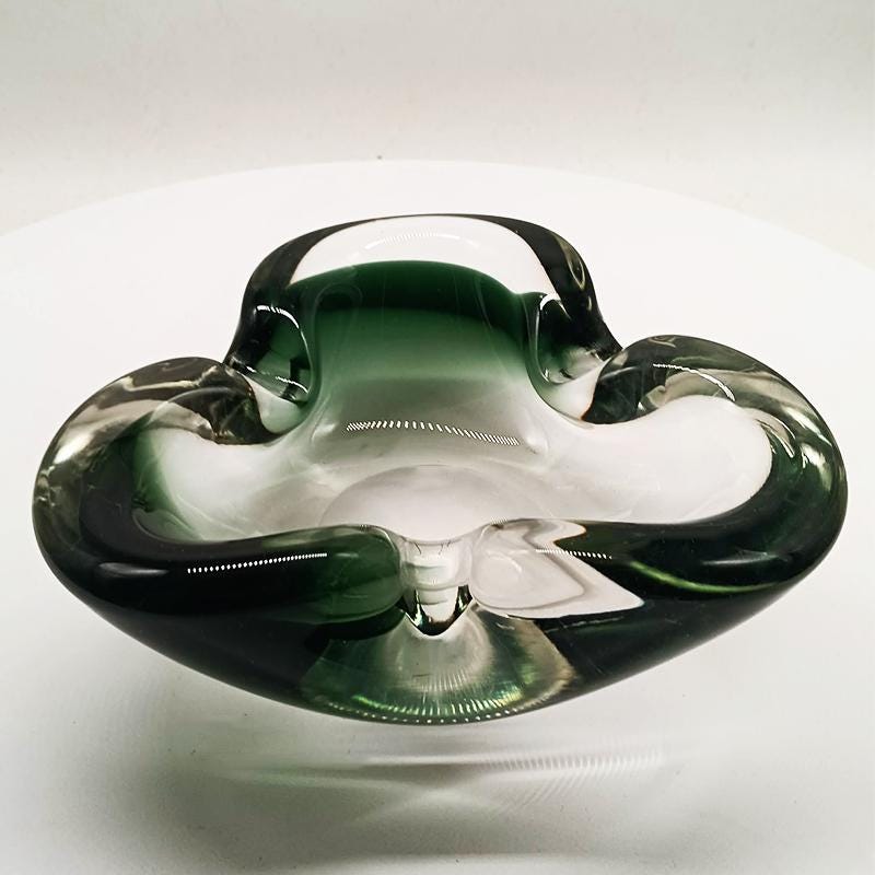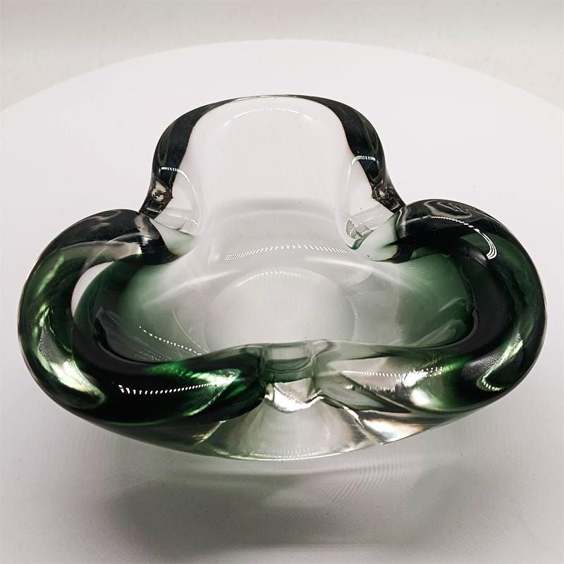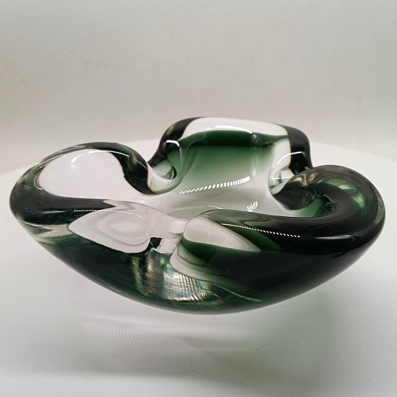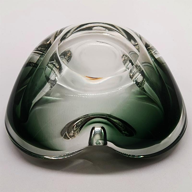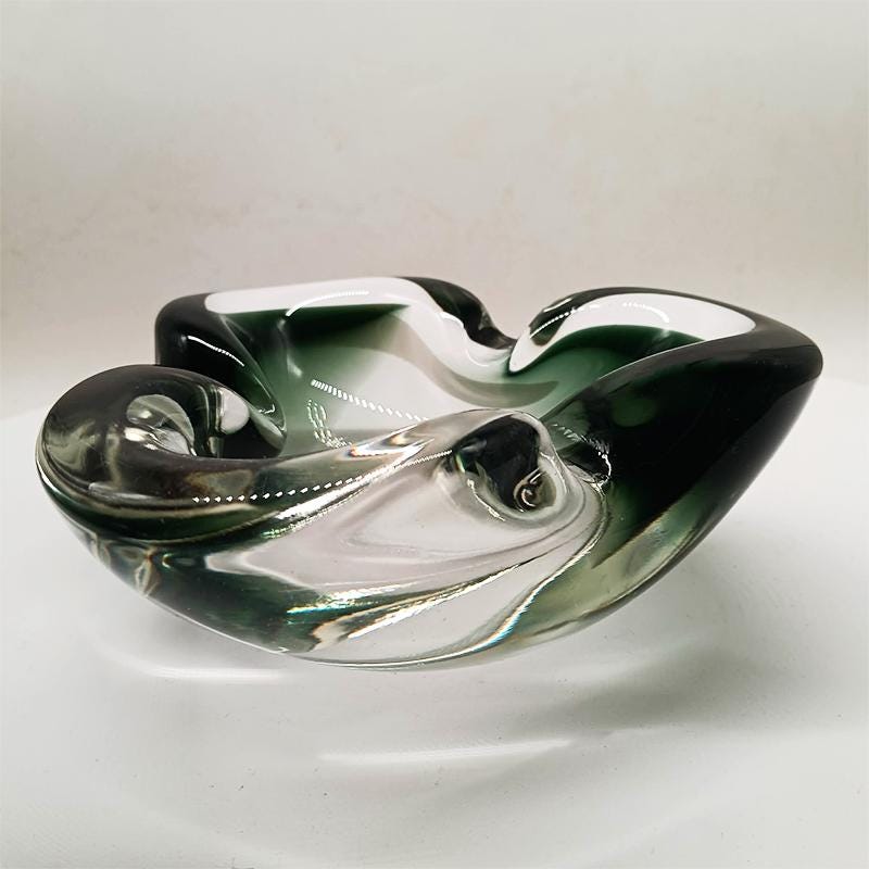 Vintage Ashtray or Catch-all in Murano Glass by Flavio Poli for Seguso. Stunning Forest Green Submerged color.