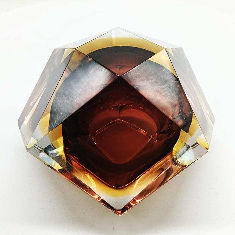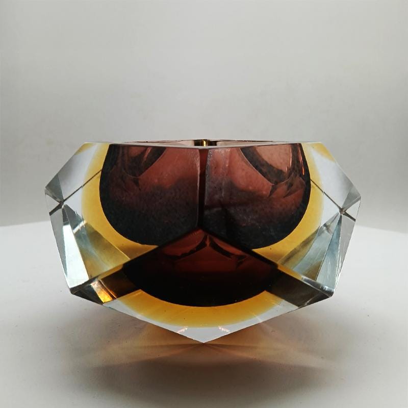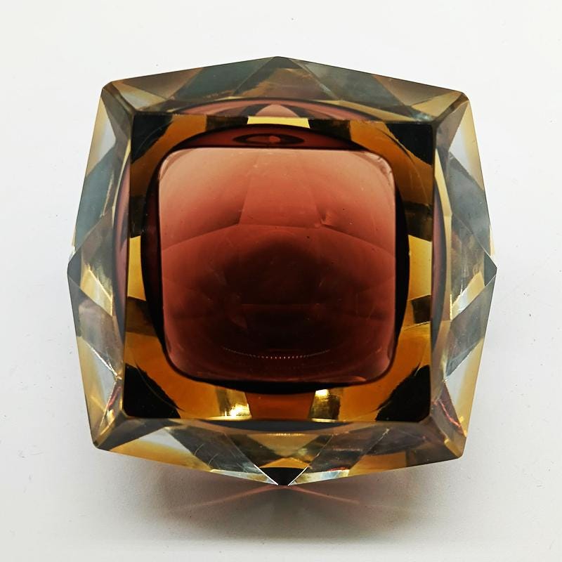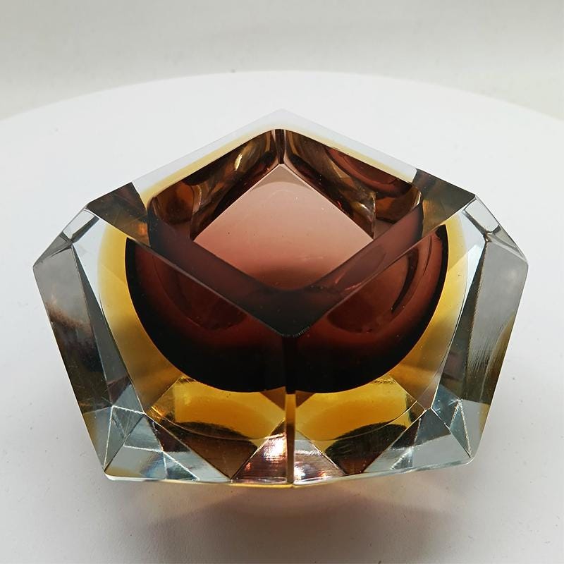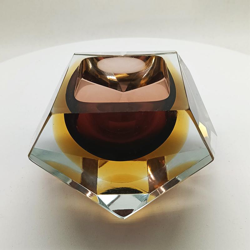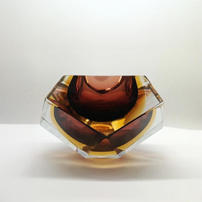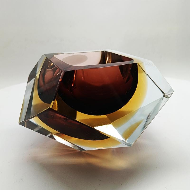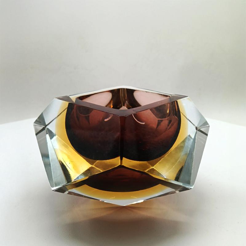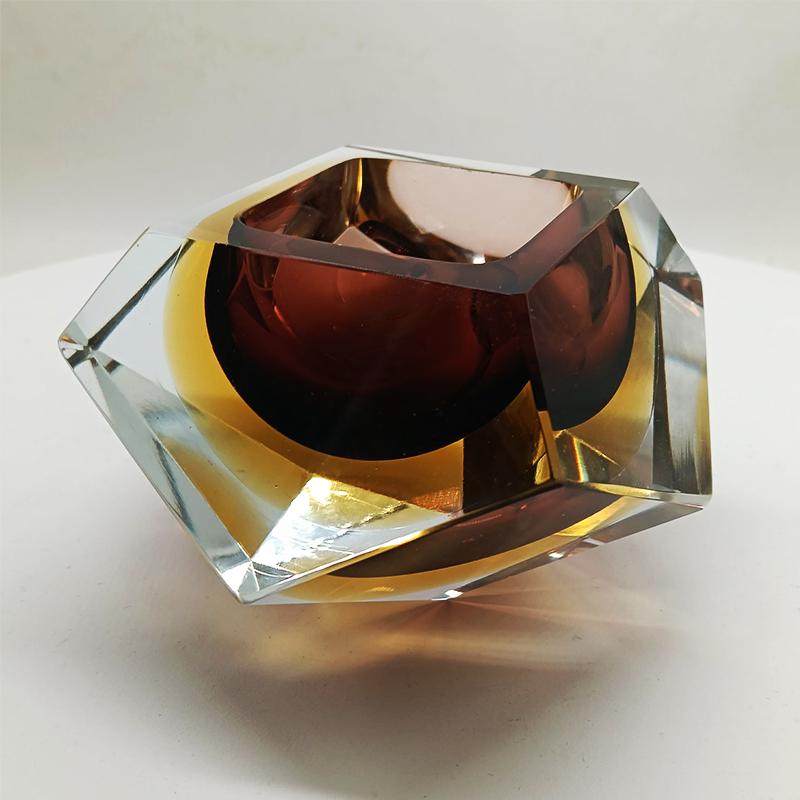 Ashtray or Catch-all in Murano Glass by Flavio Poli for Seguso. Two Stunning Submerged colors: Brown and Golden Yellow.