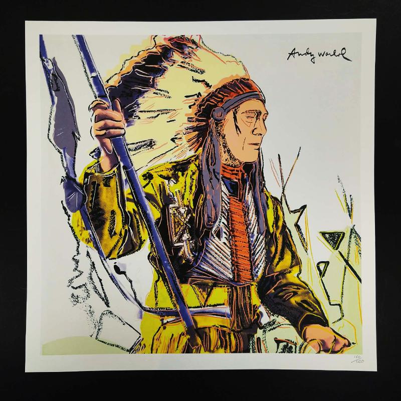 Andy Warhol "Indians" Limited Edition Lithograph by CMOA. Limited Edition Lithograph n 160 / 500 - Numbers signed in pencil. Original Editor Stamps (CMOA Carnegie Museum of Art - Pittsburgh) impressed on the front and back, Blind Stamp CMOA on the back and Holographic Authentication Stamp. Signature of the Author: Plate-Signed License: Andy Warhol LTD Enterprise. Publisher: CMOA Carnegie Museum of Art - Pittsburgh.